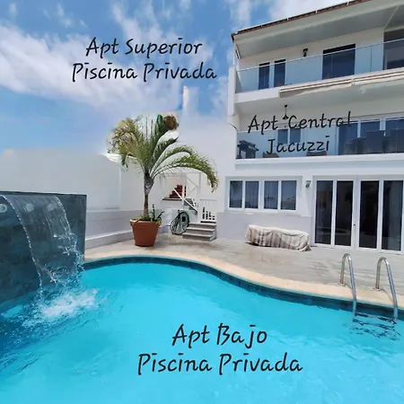 Adeje Deluxe Villas Santa Monica Costa Adeje hotel is around 10 minutes by car from Fanabe Beach and features a patio with a barbeque grill and outdoor dining areas. Boasting an outdoor swimming pool, this Costa Adeje hotel is nestled within a 10-minute drive of natural attractions like Playa de Las Vistas.